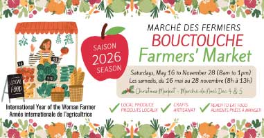 Les Dollars du Marché sont une belle façon de supporter le Marché des fermiers de Bouctouche. Ils sont disponibles à tous les samedis au kiosque d’information 50/50.